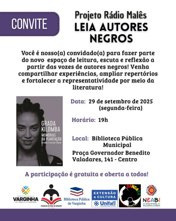 A Biblioteca Pública Municipal de Varginha recebe o 2º Encontro do Clube de Leitura do Projeto Rádio Malês, marcado para o dia 29 de setembro (segunda-feira), às 19h. A iniciativa é um espaço voltado ao fortalecimento da memória, da cultura e das vozes negras, promovendo reflexões sobre literatura e práticas antirracistas.