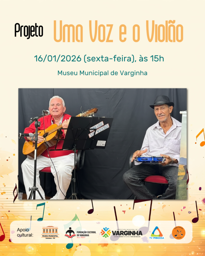O Museu Municipal de Varginha será palco da primeira apresentação de 2026 do projeto “Uma Voz e o Violão”, que acontece nesta sexta-feira, 16 de janeiro, às 15h. A iniciativa integra a programação cultural do município e tem como proposta valorizar a música e aproximar a população dos espaços culturais da cidade.