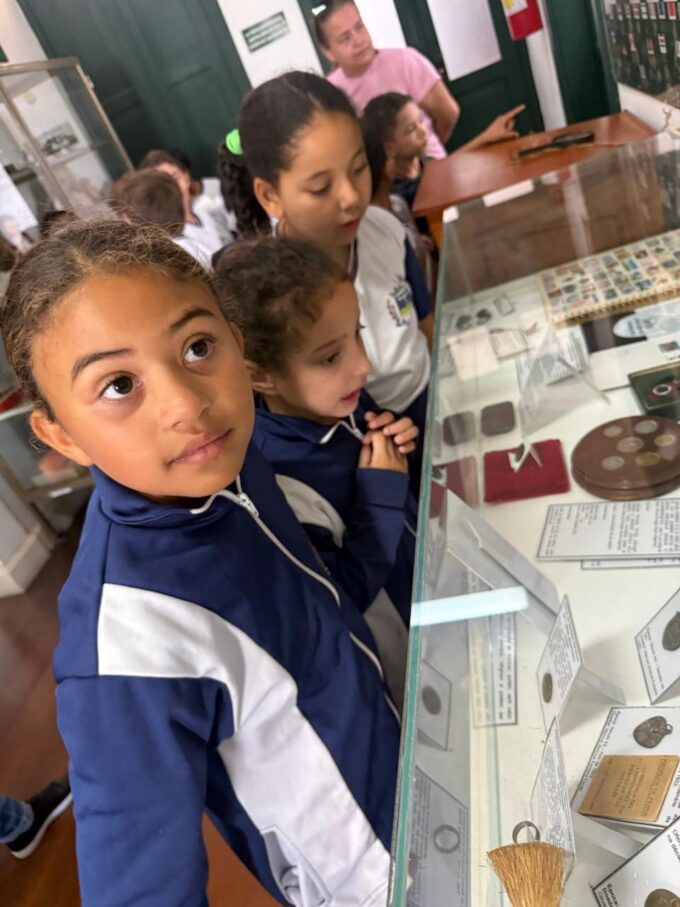 Os alunos do 2º ano do Ensino Fundamental da E.M. Paulo Cândido de Figueiredo realizaram, nesta terça-feira (24/03), uma visita ao Museu Municipal de Varginha. Acompanhados pela diretora Regina Goulart, pela professora Daliele e pela monitora Isabel, os estudantes tiveram a oportunidade de conhecer o acervo exposto e aprofundar seus conhecimentos sobre a história do município.